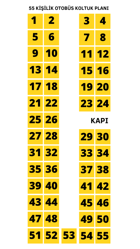 Bu gezi, 55+1 otobüs ile yapılmaktadır. Koltuk oturma planı aşağıdaki gibidir.